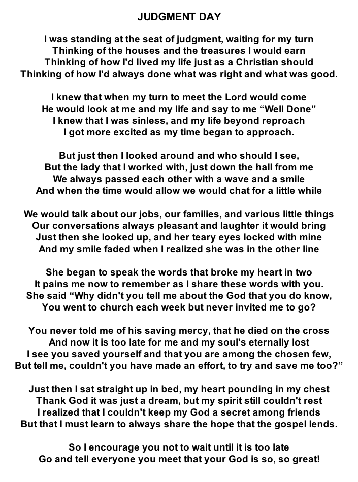 This poem, written by an unknown author, was sent to me by a friend.  If anyone knows who wrote it, please send me an email, so that I could acknowledge them. Poetry Acts 2:38 Lady - Home